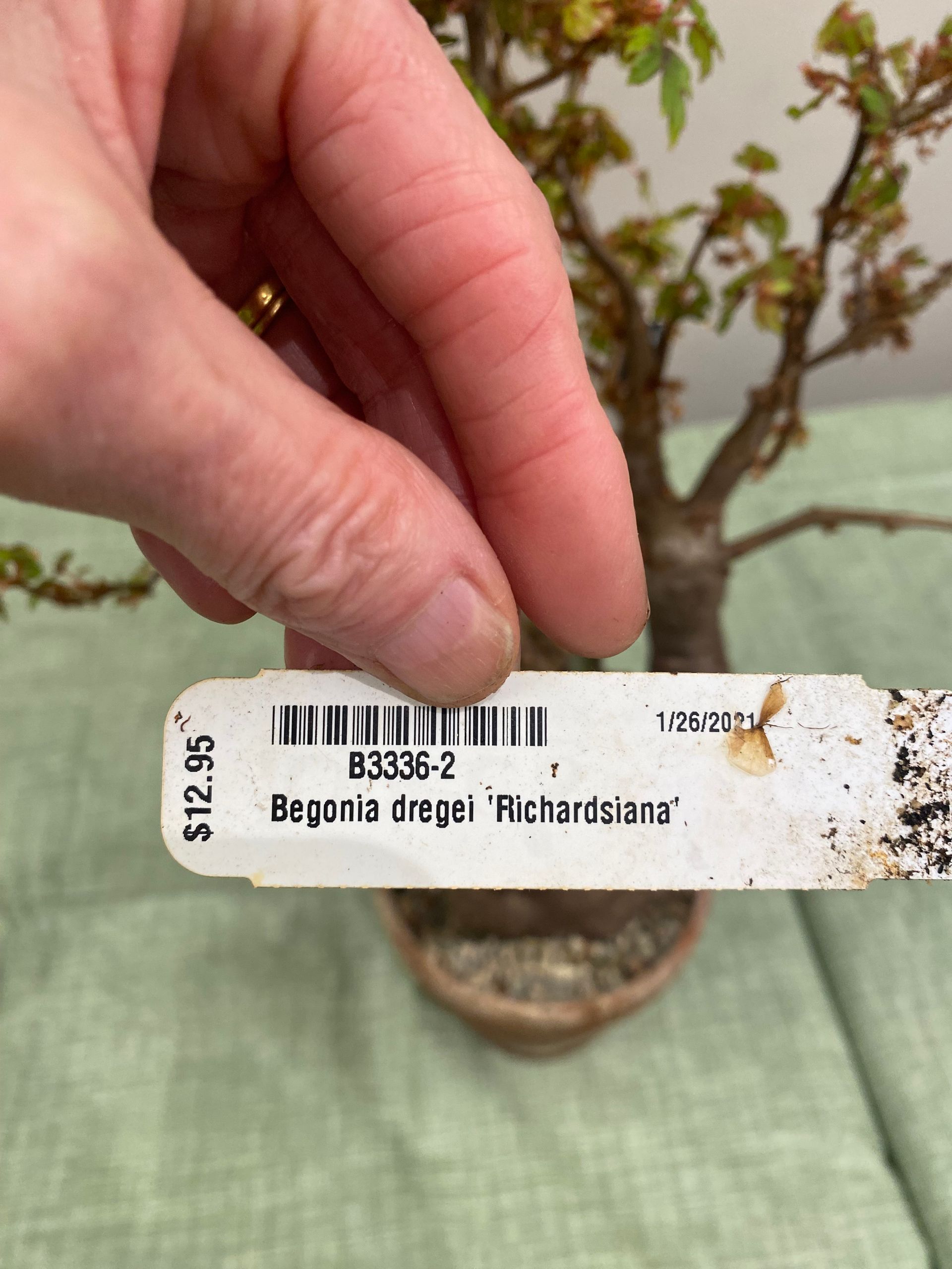 Diane brought in this begonia and generously provided cuttings Begonia dregei 'Richardsiana' (often referred to as B. richardsiana or Begonia dregei 'Richardsiana' --Dwarf Begonia) is a miniature, semi-tuberous, and deciduous species from South Africa, highly prized for its bonsai-like appearance. It features small, maple-shaped, bright green leaves on a woody, thick stem (caudex) and produces white, sometimes fragrant, flowers from spring to autumn. Available at Logee's https://www.logees.com